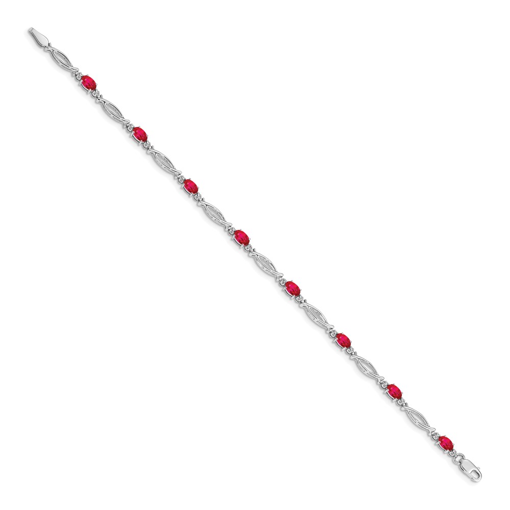 14k White Gold Complete Diamond and Oval Ruby 7.25 inch Bracelet