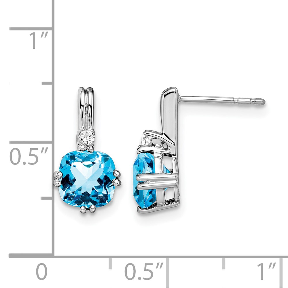 14k White Gold Cushion Blue Topaz and Diamond Earrings
