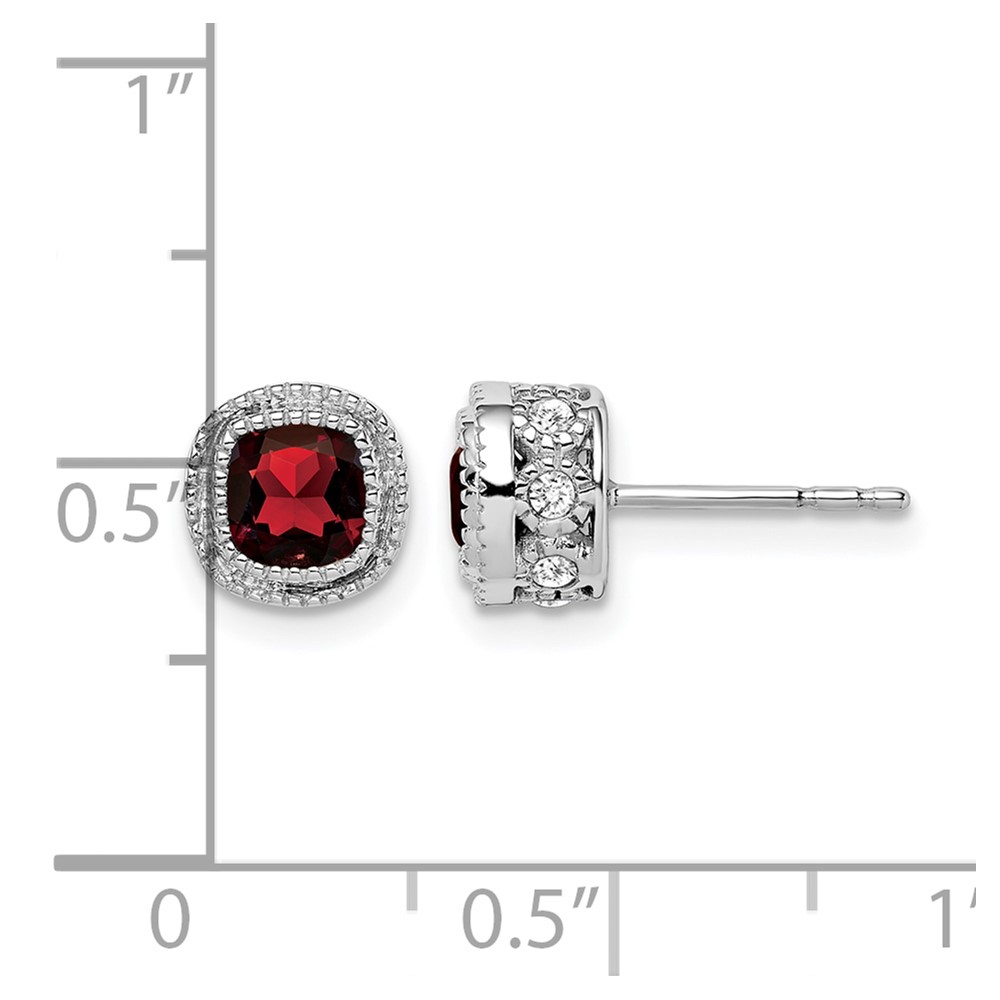 14k White Gold Cushion Garnet and Diamond Earrings