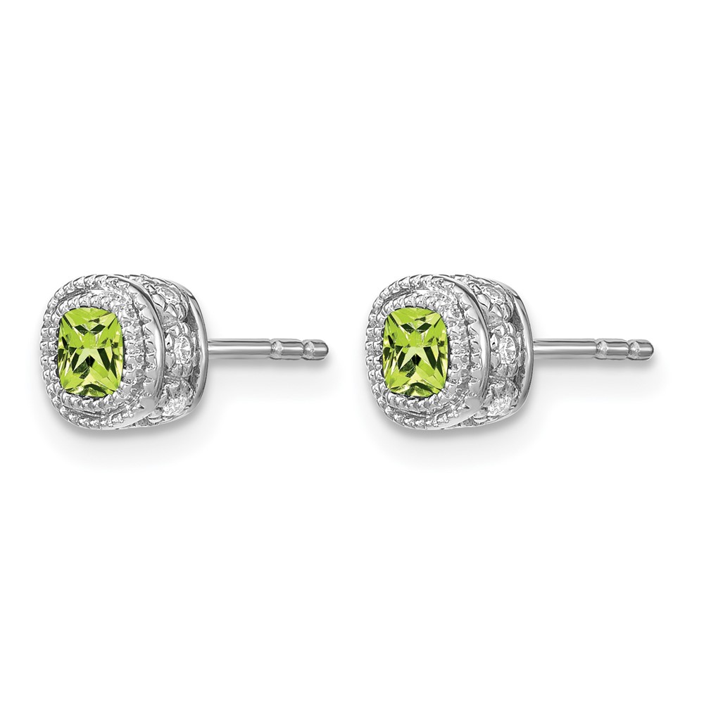 14k White Gold Cushion Peridot and Diamond Earrings