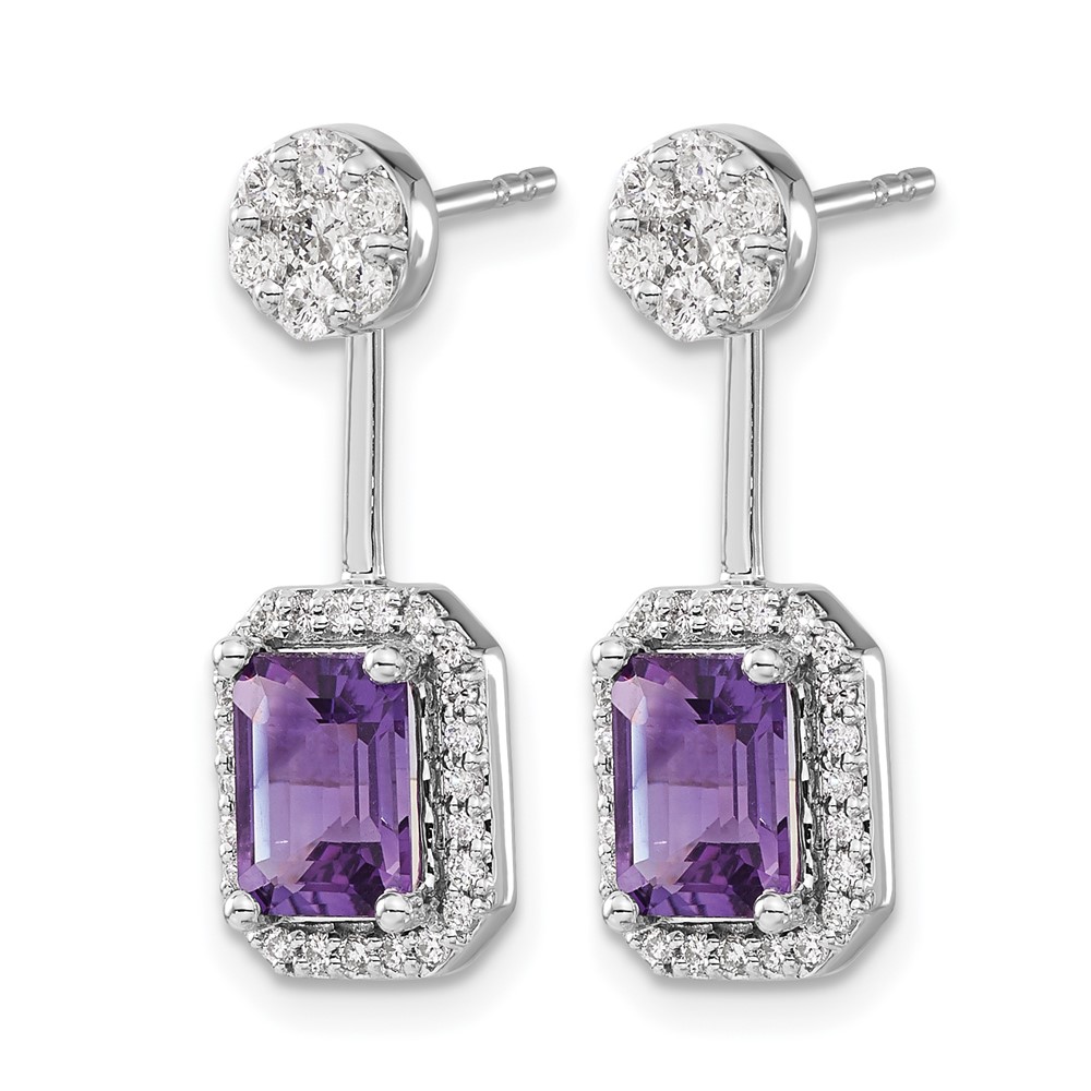 14k White Gold Diamond/Amethyst Front/Back Earrings