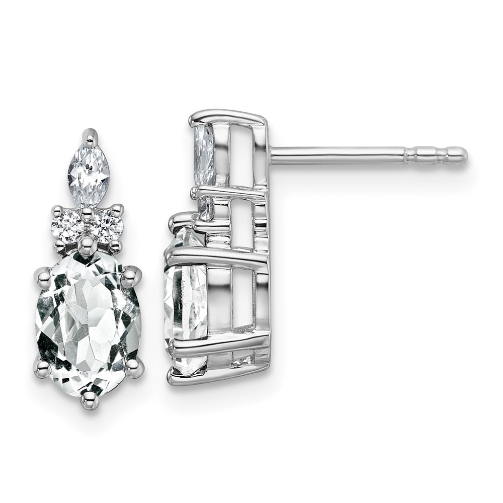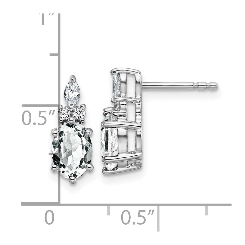 14K White Gold Diamond and 7×5 Oval April/White Topaz Post Earrings