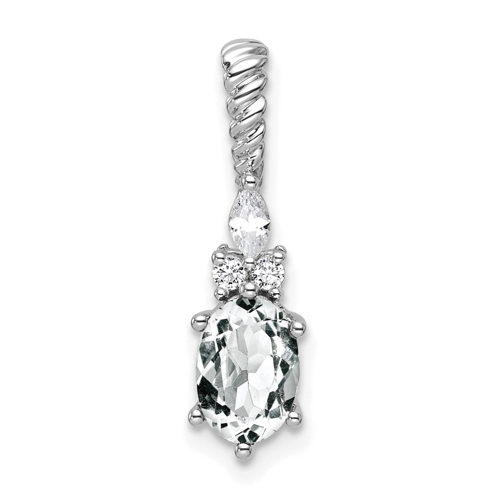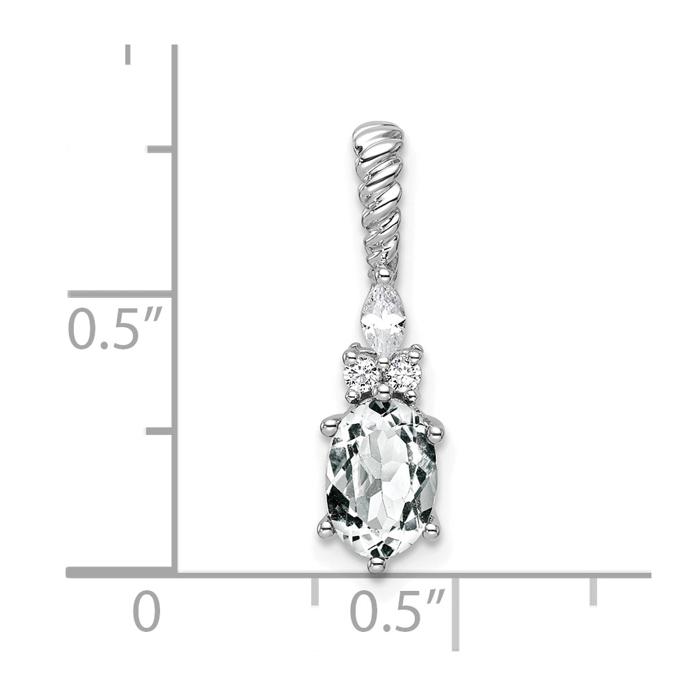14K White Gold Diamond and 7×5 Oval April/White Topaz Twisted Chain Slide