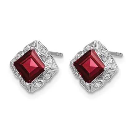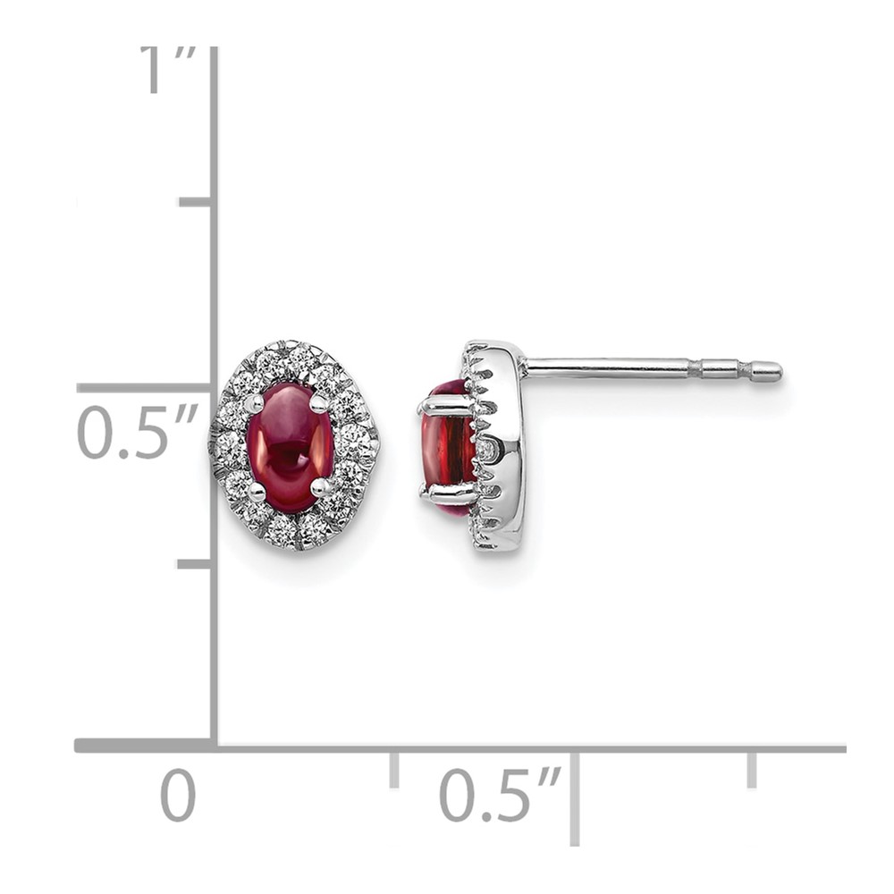 14k White Gold Diamond and Cabochon Garnet Earrings