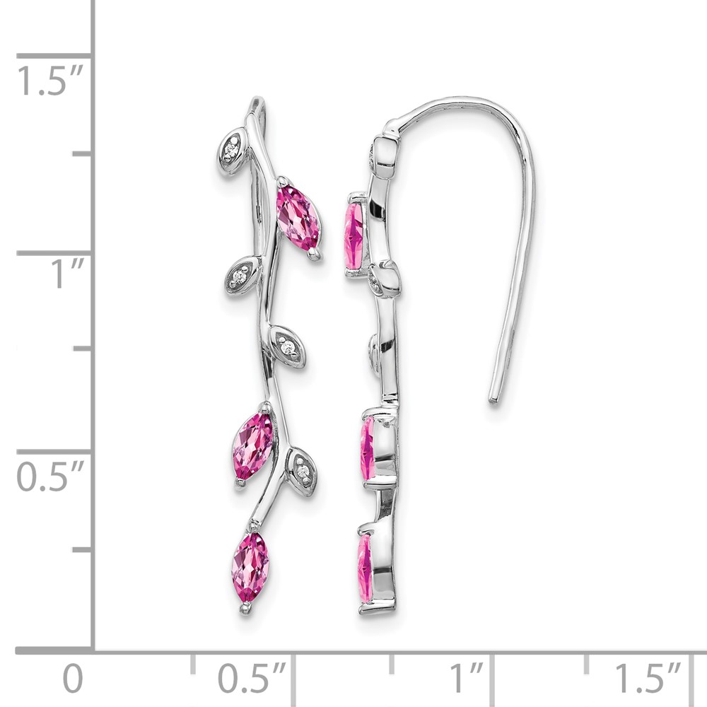 14k White Gold Diamond and Marquise Pink Sapphire Leaves Drop Wire Earrings