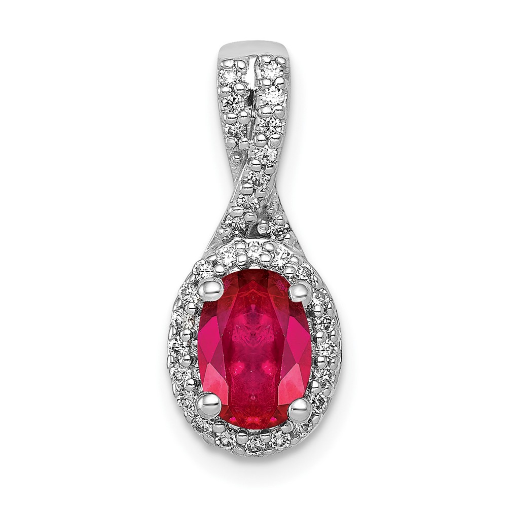 Be the first to review “14k White Gold Diamond and Oval Ruby Halo Pendant Fits up to 2mm Regular/3mm Fancy or Reversible Omega” Cancel reply