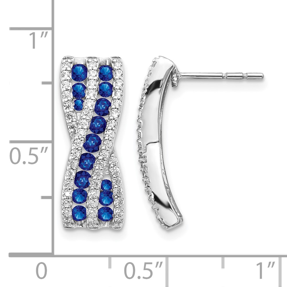 14k White Gold Diamond and Sapphire Fancy Curved -X- Post Earrings