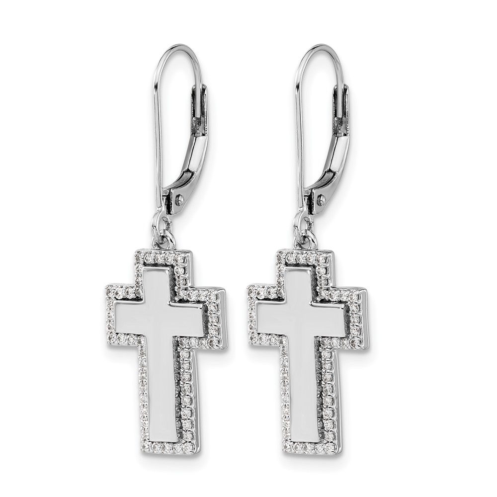 14k White Gold Diamond Fancy Cross Leverback Earrings
