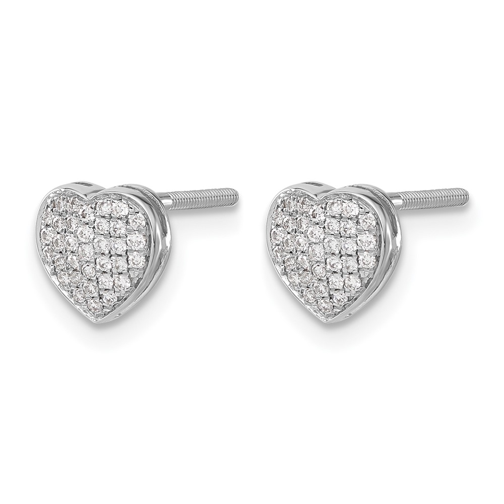 14k White Gold Diamond Heart Screw Back Post Earrings