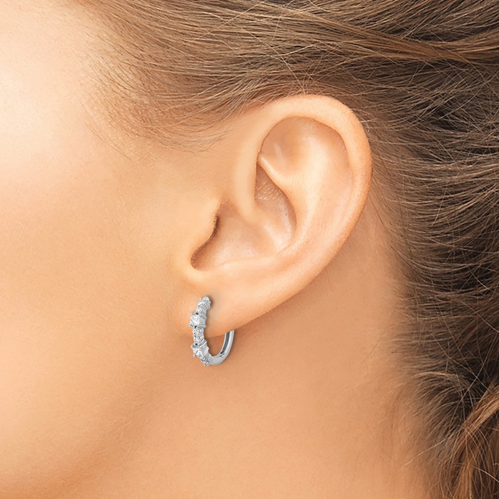 14k White Gold Diamond Hinged Hoop Earrings