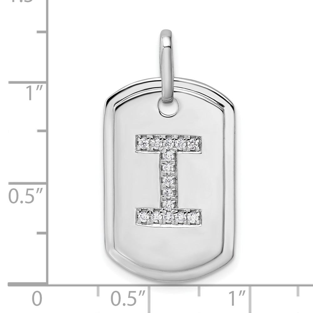 14K White Gold Diamond Initial I Dog Tag Charm