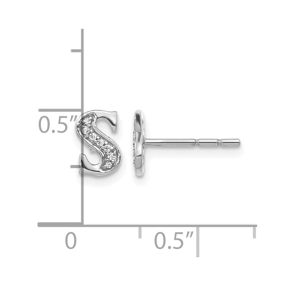 14k White Gold Diamond Initial S Post Earrings