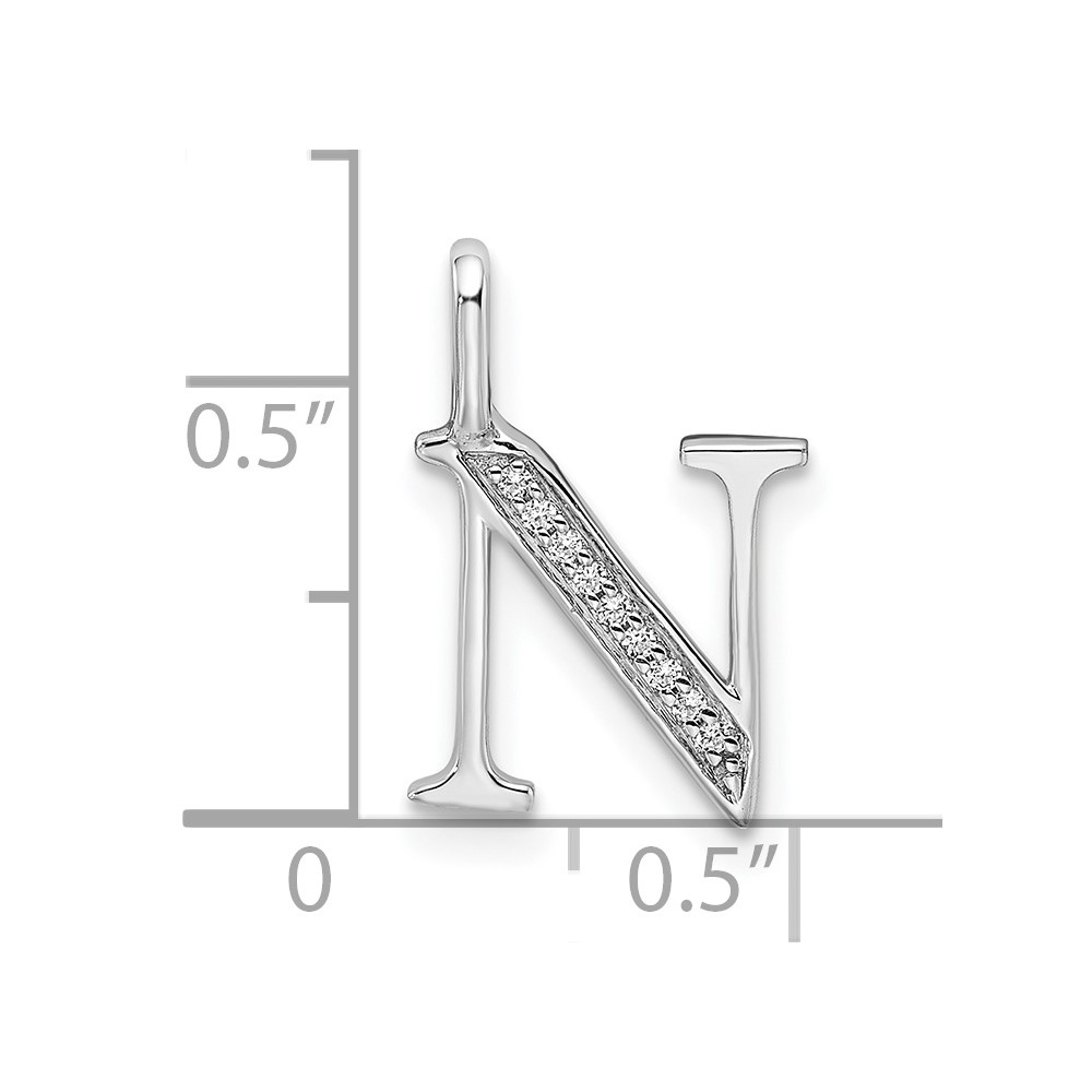 14K White Gold Diamond Letter N Initial Pendant