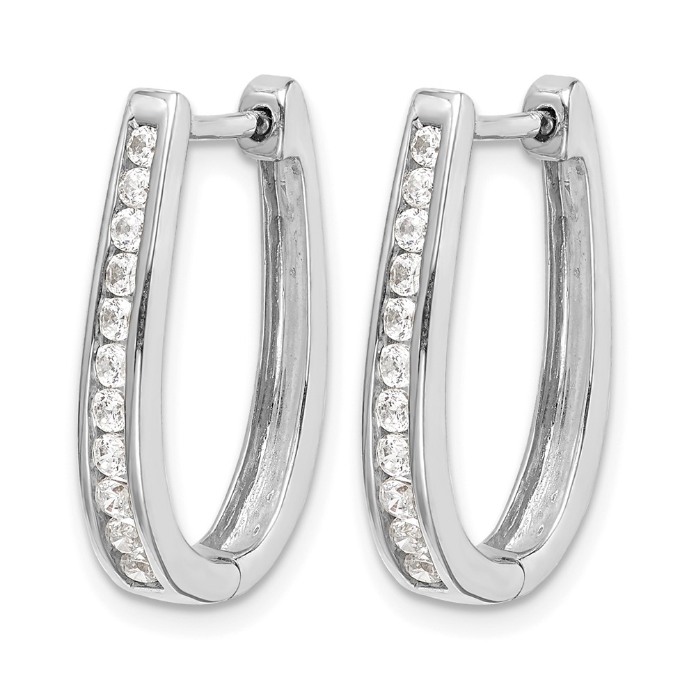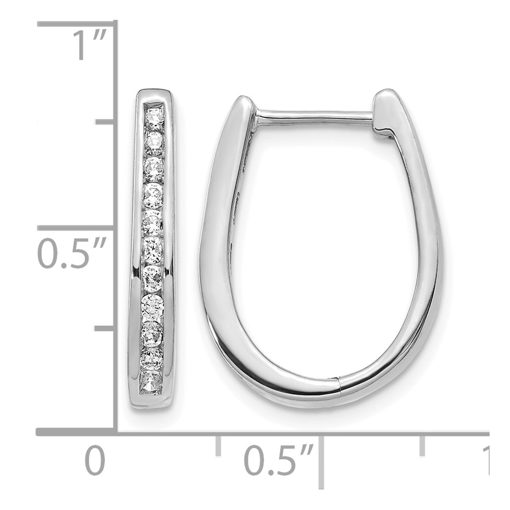 14k White Gold Diamond Oval Hinged Hoop Earrings