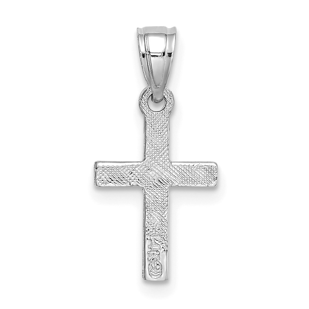 14K White Gold Diamond Shape Center Mini Cross Charm