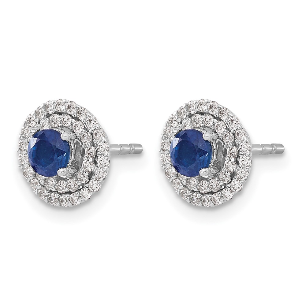 14k White Gold Double Row Diamond Halo Jackets and 4mm Sapphire Stud Earrings