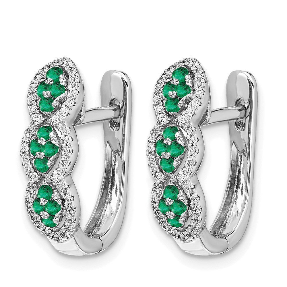 14k White Gold Emerald Cluster and Diamond Hinged Hoop Earrings