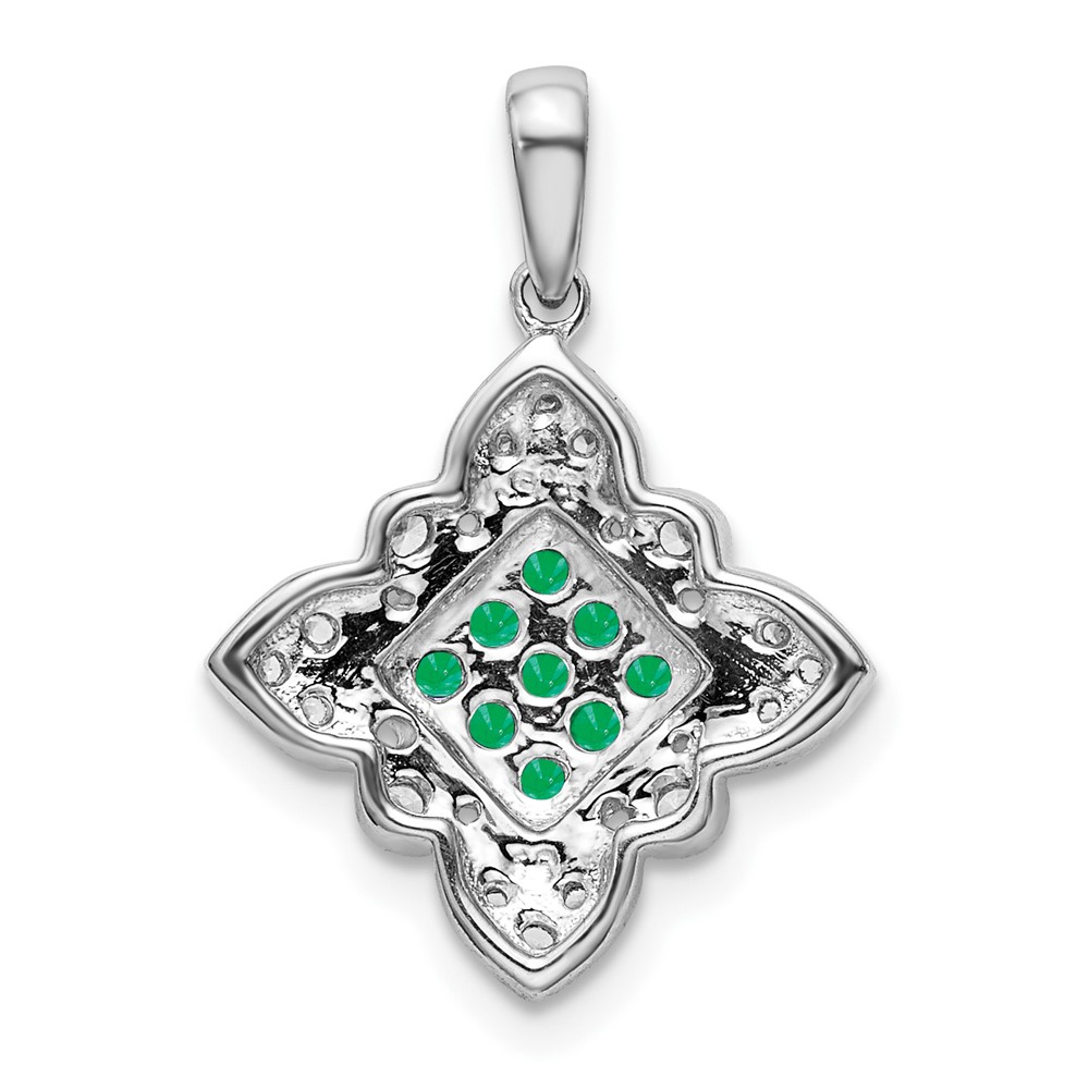 14k White Gold Emerald Cluster and Diamond Vintage Pendant