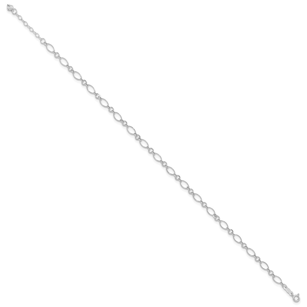 14k White Gold Diamond-cut Rice Puff Beads 4-Station Plus Extender – Total Anklet