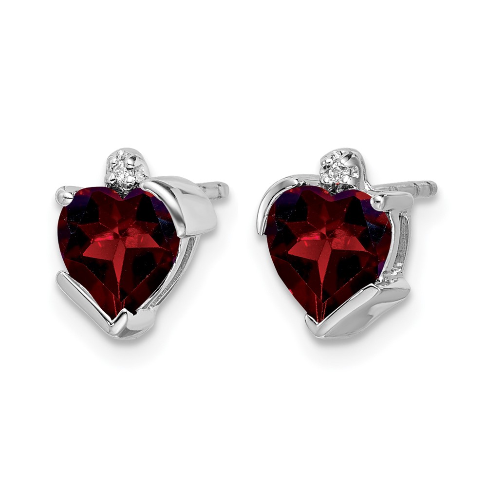 14k White Gold Garnet and Diamond Heart Earrings