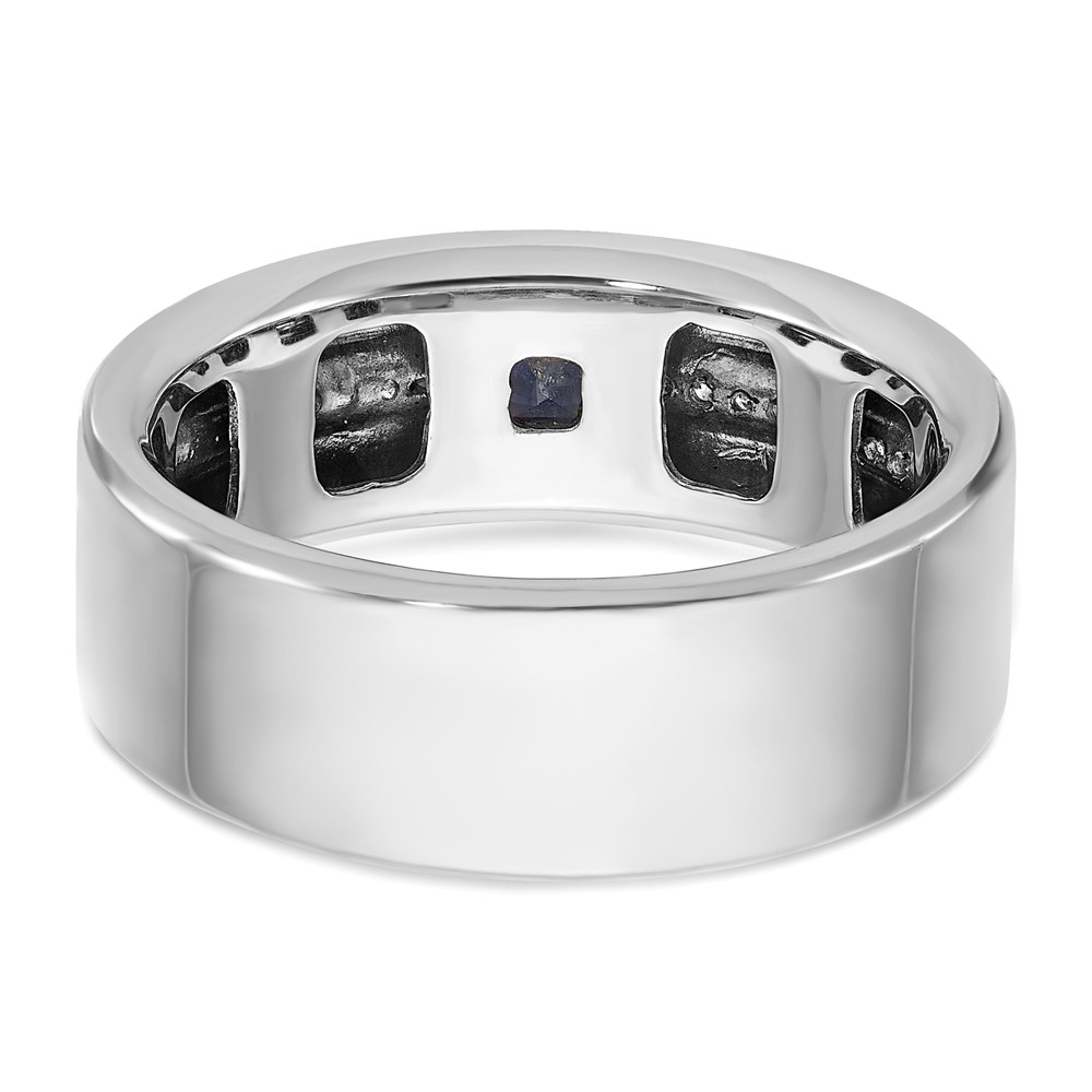 14k White Gold IBGoodman Men’s Satin Lab Created Sapphire and 1/8 carat Diamond Complete Ring