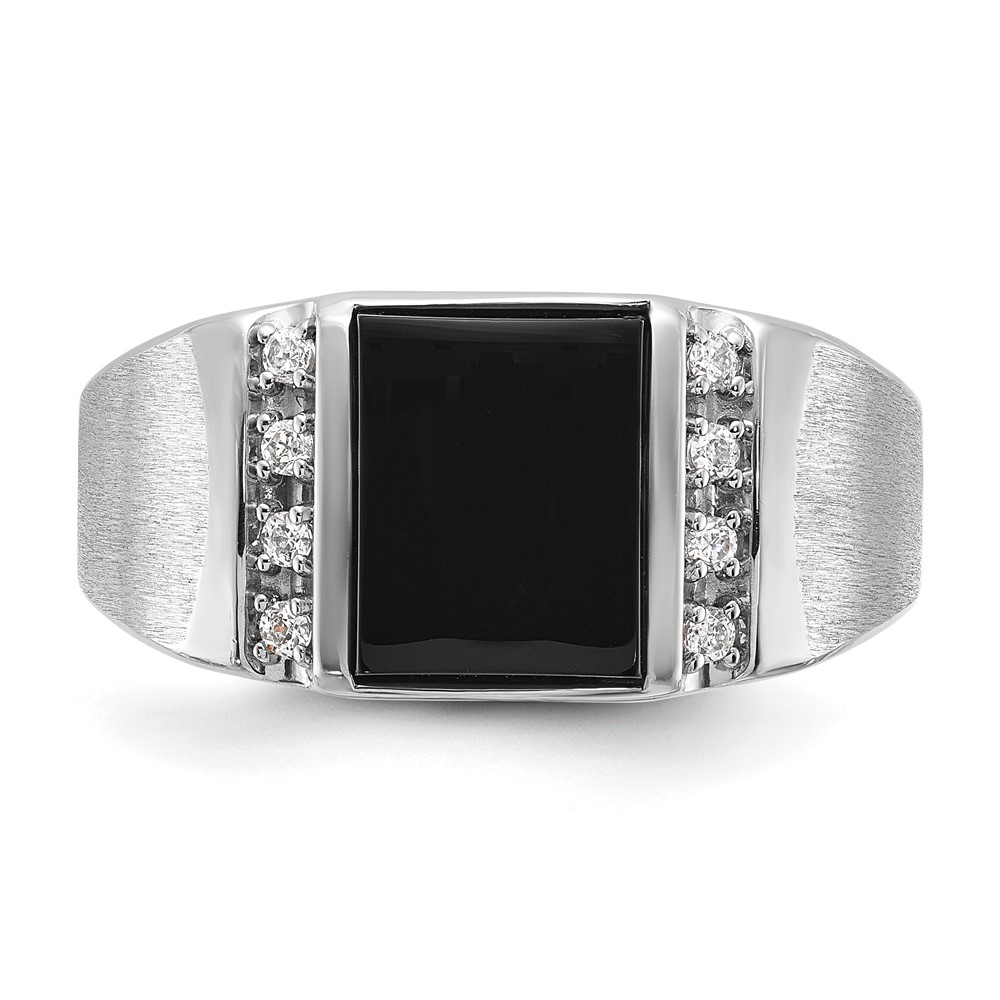 14k White Gold IBGoodman Men’s Satin Onyx and 1/8 carat Diamond Complete Ring
