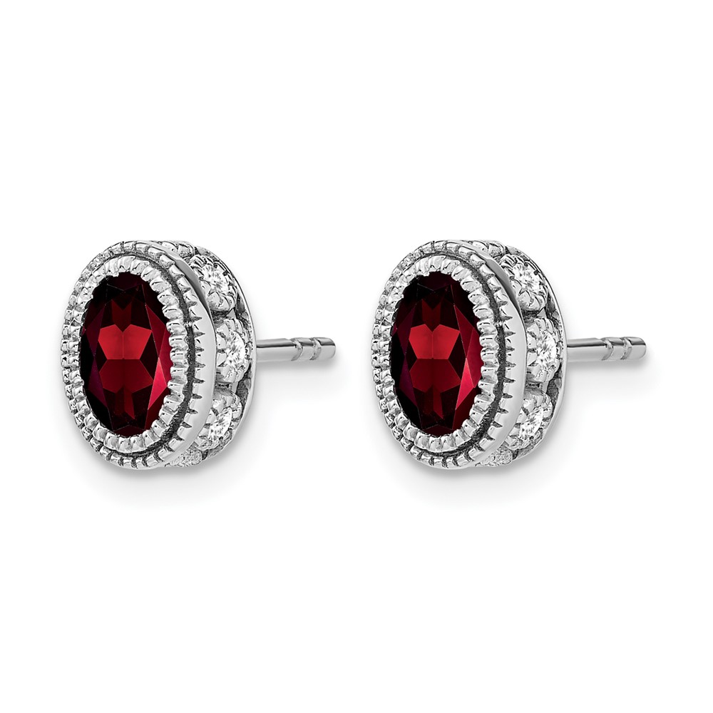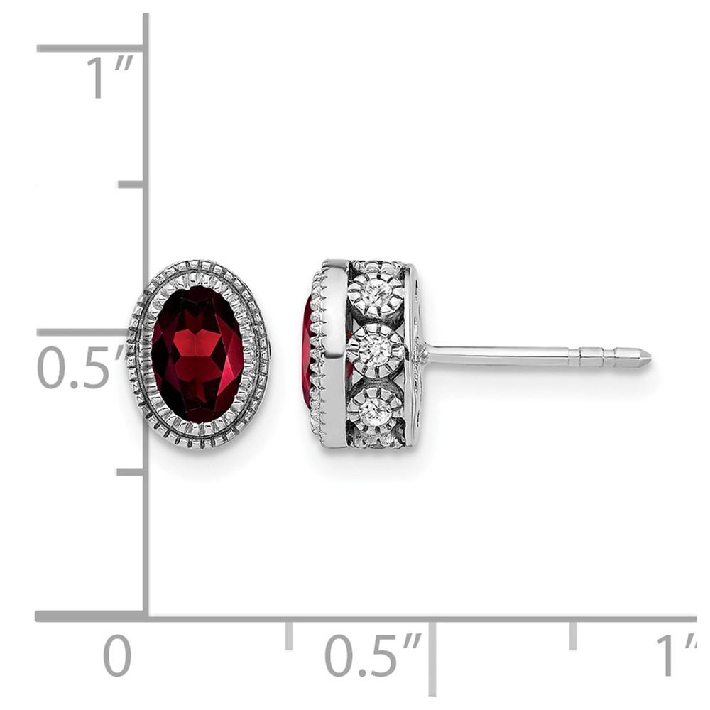 14k White Gold Oval Garnet and Diamond Earrings