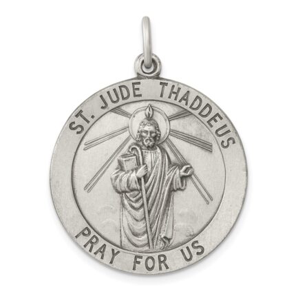 Be the first to review “14K White Gold Polished and Satin Solid St Jude Thaddeus Medal Oval Pendant” Cancel reply