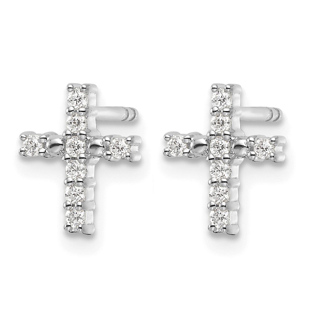 14k White Gold Polished Diamond Cross Post Earrings