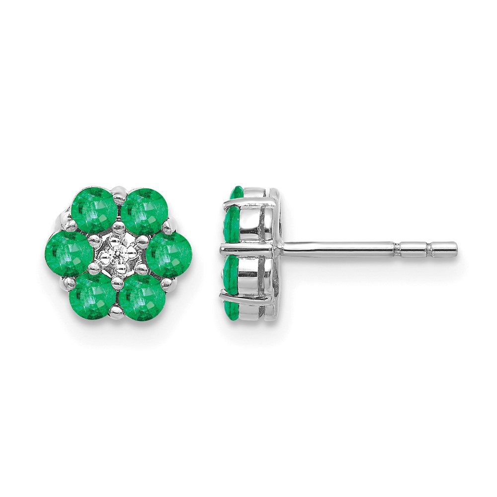 14k White Gold Polished Emerald and Diamond Floral Post Earrings