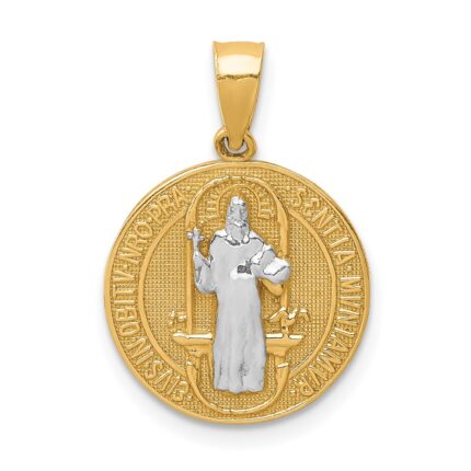 Be the first to review “14K White Gold Polished Solid Large Saint Michael Protect Us Medal Badge Pendant”