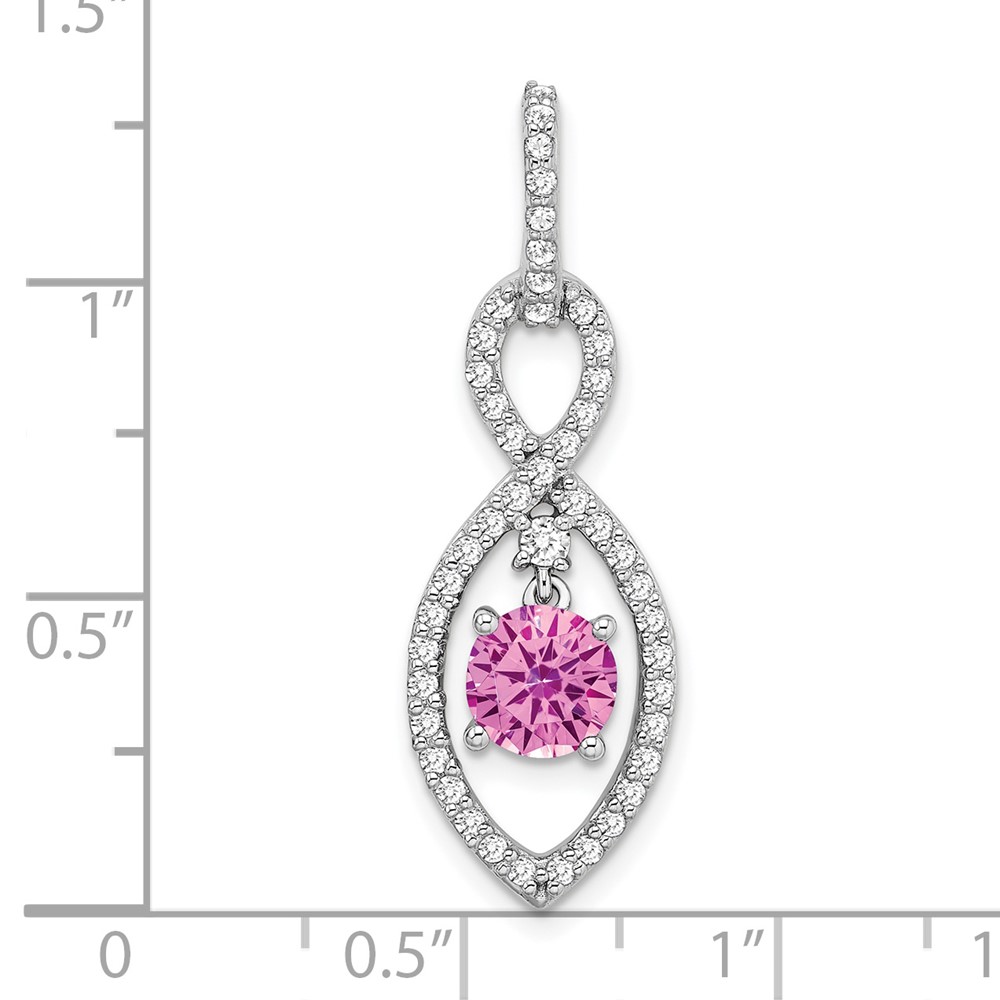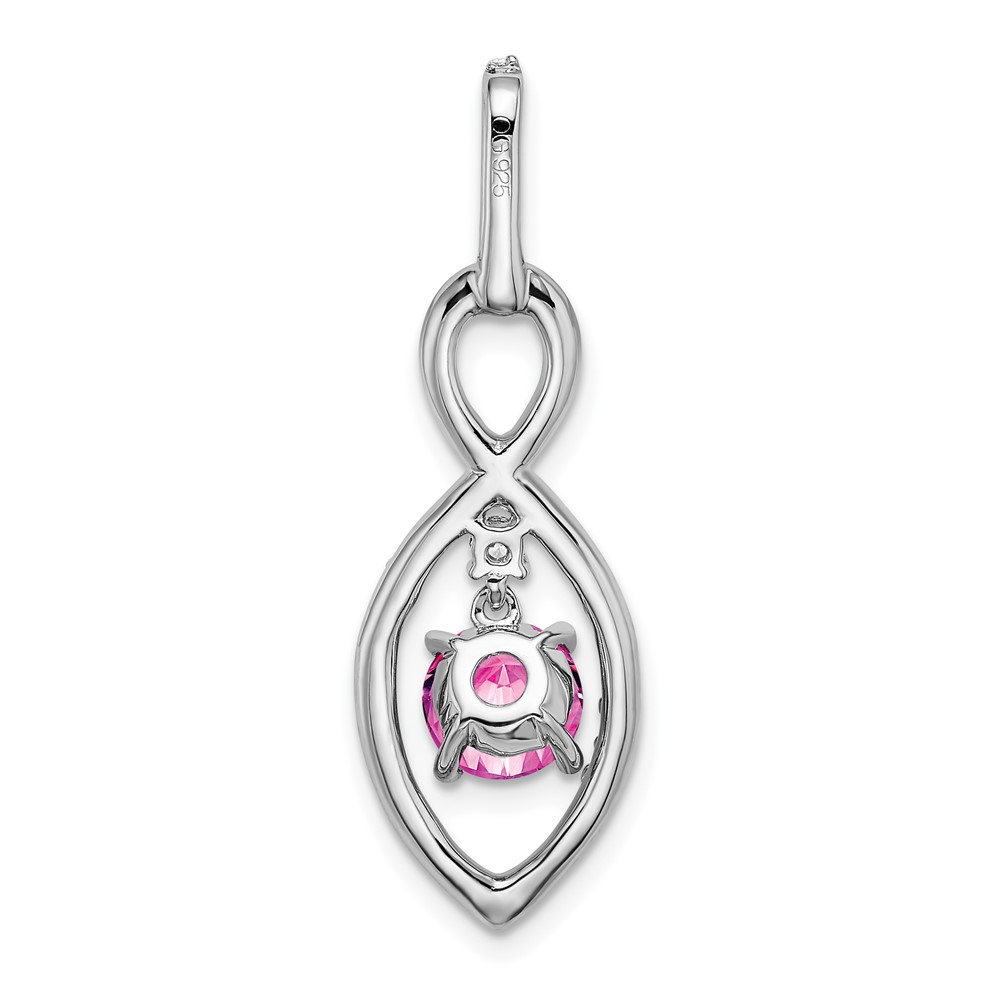 14k White Gold Round Lab Created Pink Sapphire and Diamond Chain Slide
