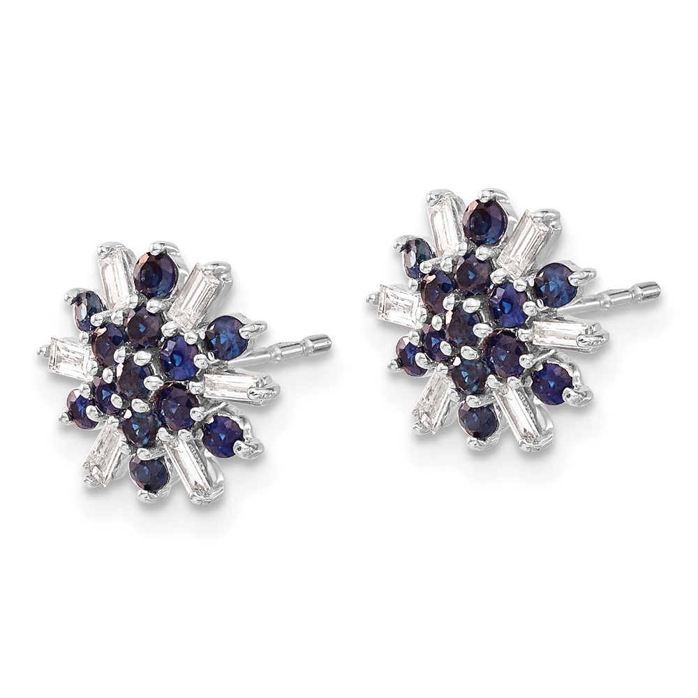 14k White Gold Sapphire and Diamond Snowflake Post Earrings