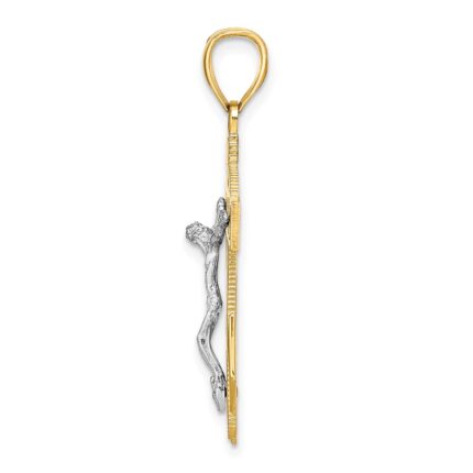 14k White Gold Satin Diamond-cut Mariners Crucifix Pendant