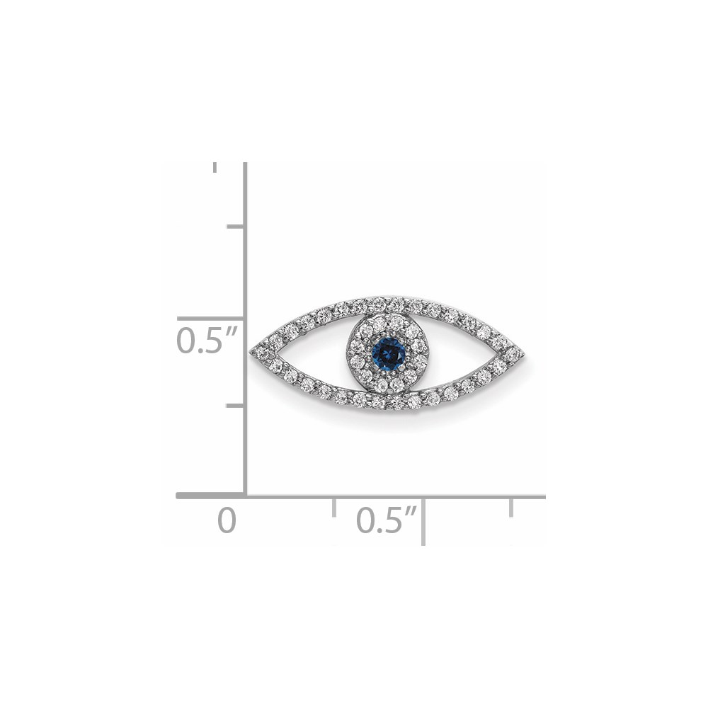 14k White Gold Small Sapphire and A Diamond Evil Eye Chain Slide
