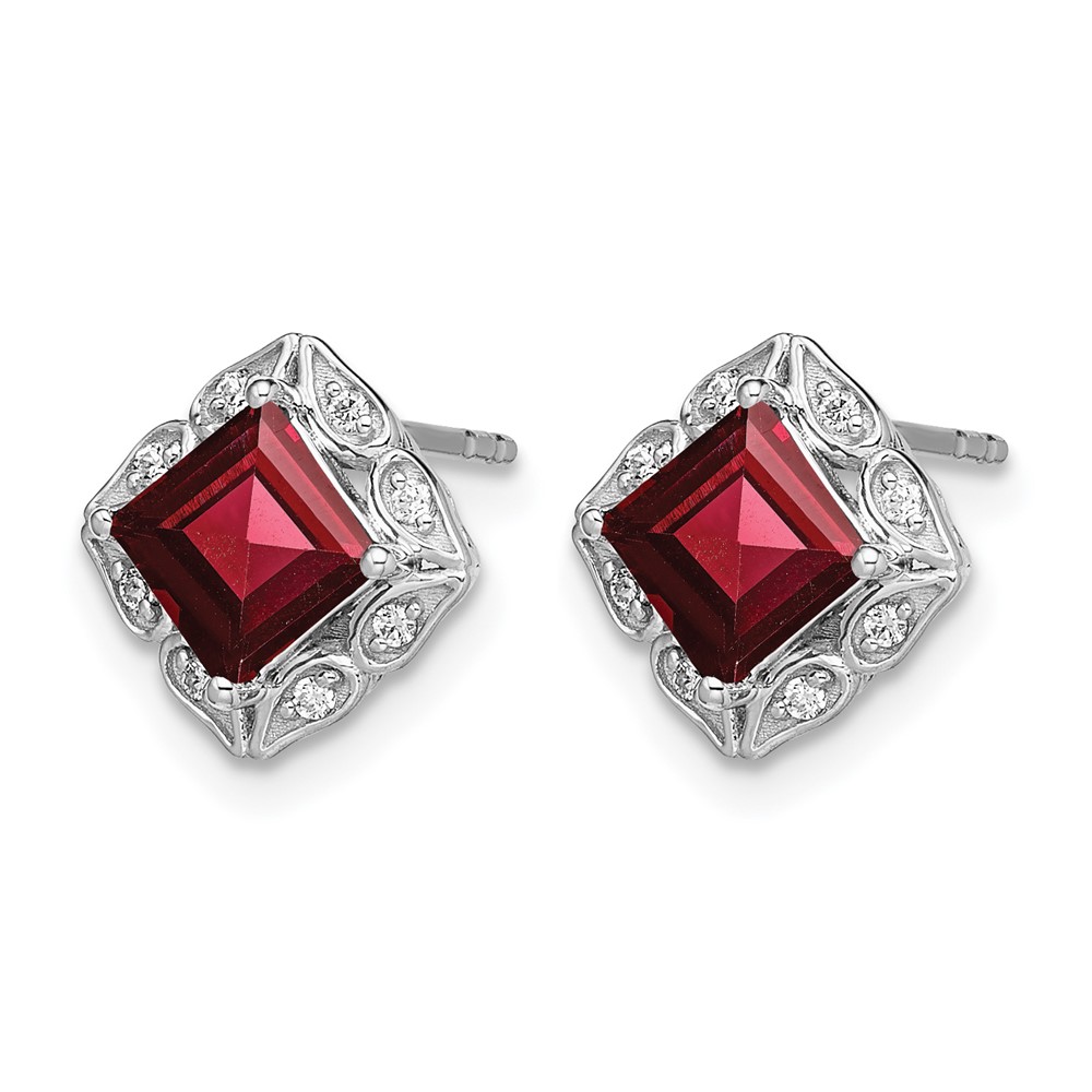14k White Gold Square Garnet and Diamond Earrings