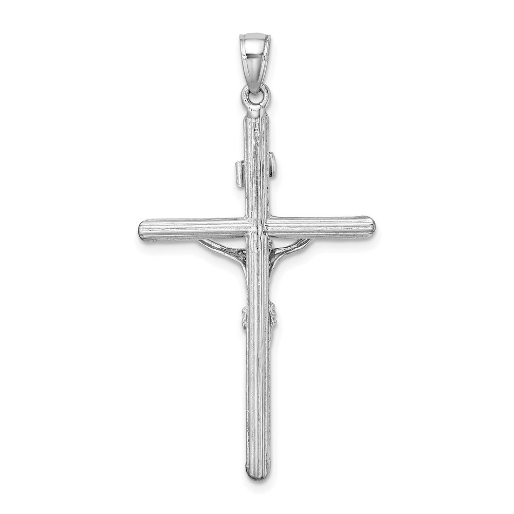 14K White Gold Textured Crucifix Charm