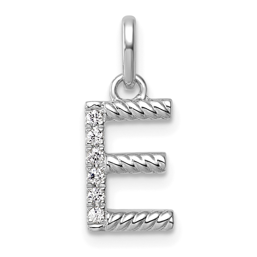 14k White Gold Twisted .05 ct. Diamond Initial E Charm