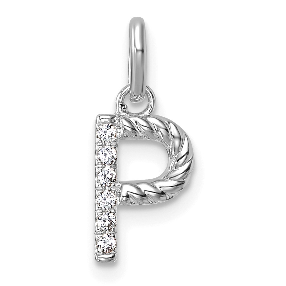 14k White Gold Twisted .05 ct. Diamond Initial P Charm