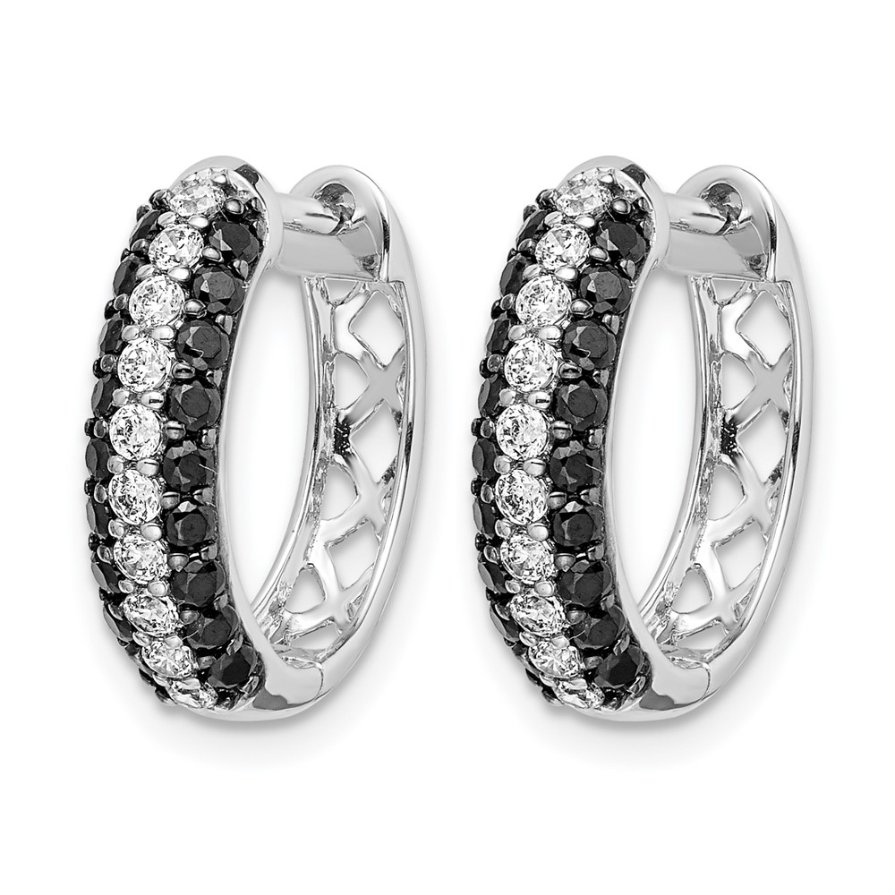 14k White Gold White and Black Diamond Hinged Hoop Earrings