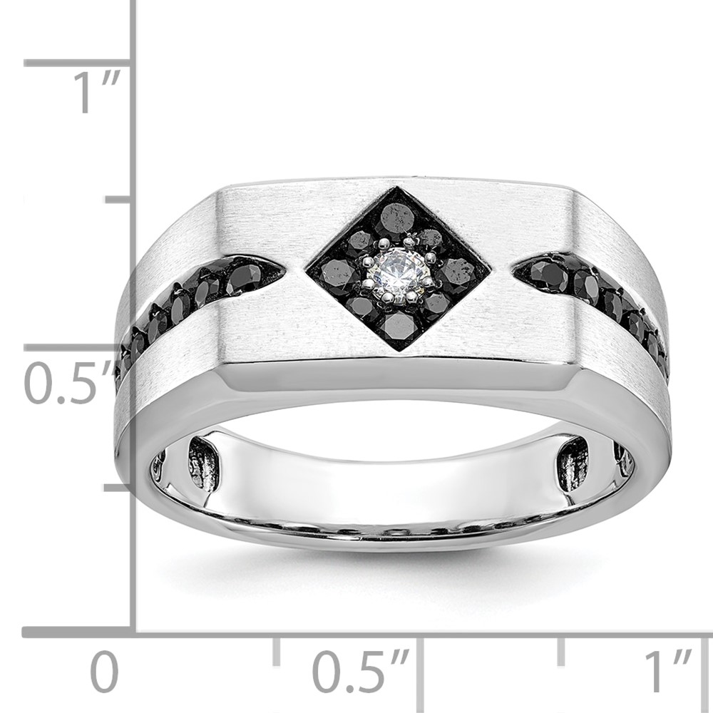 14k White Gold with Black Rhodium IBGoodman Men’s Satin 5/8 carat Black and White Diamond Complete Ring
