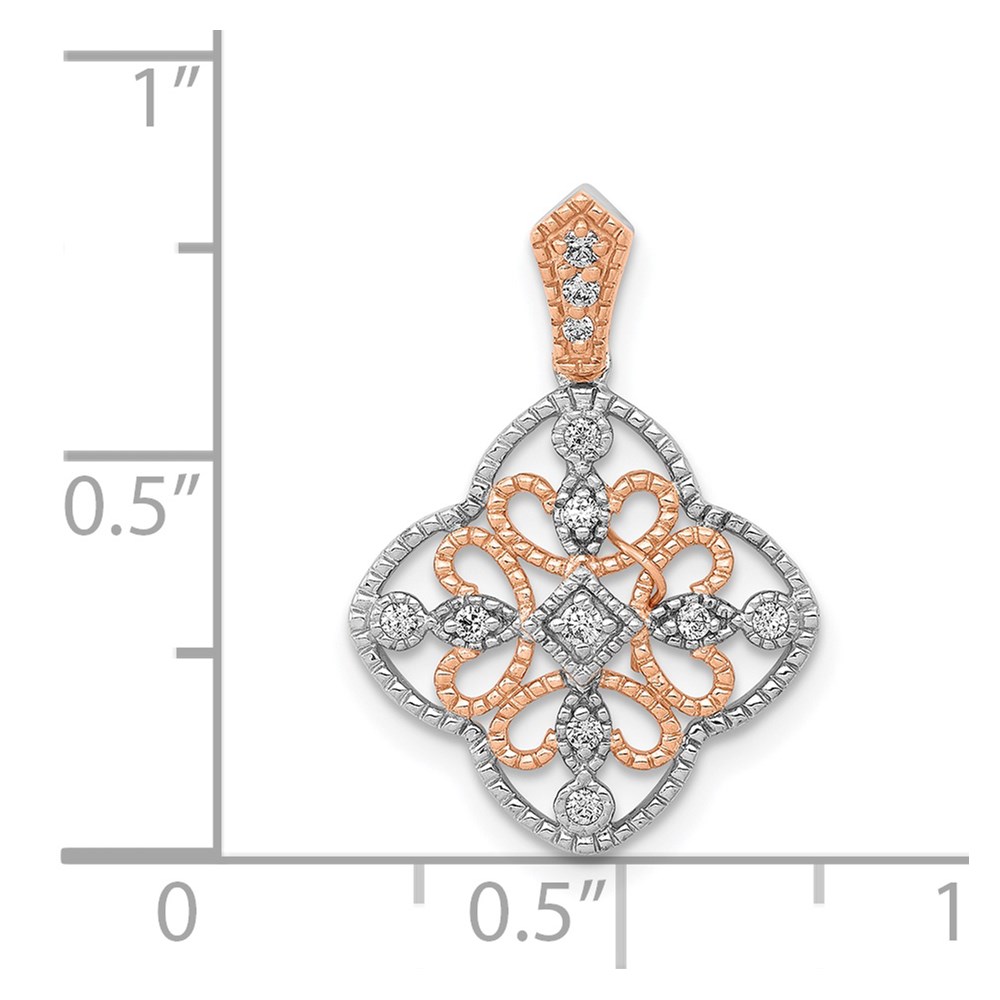 14k White Gold with Rose Rhodium 1/10 carat Diamond Vintage Pendant