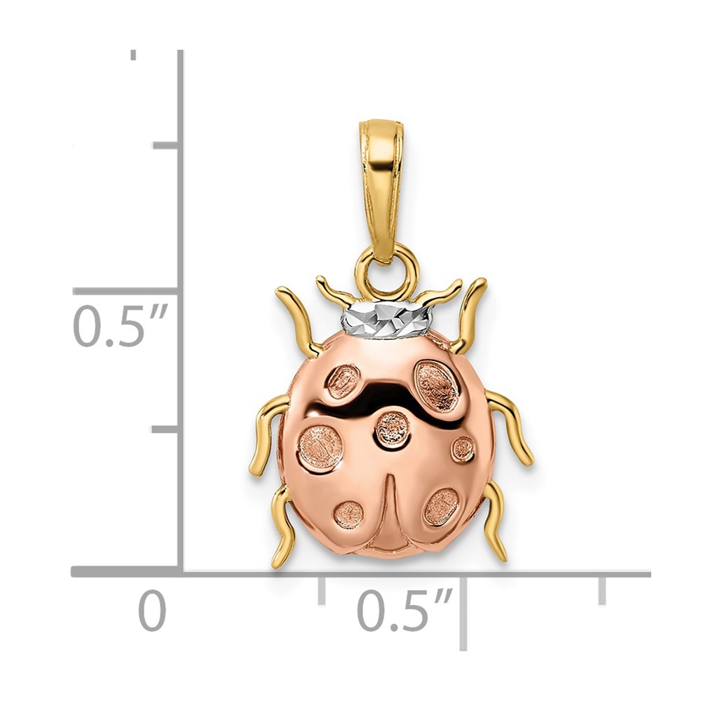 14k with White and Rose Rhodium Diamond-cut Ladybug Pendant