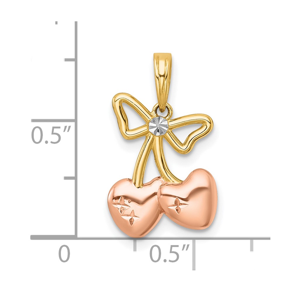 14k with White Rhodium and Rose-plating Polished Heart Cherries Charm