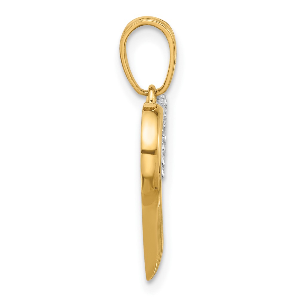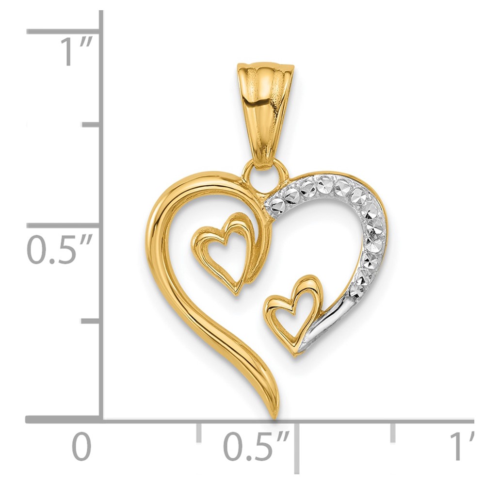 14K with White Rhodium Diamond-cut Open Hearts Pendant
