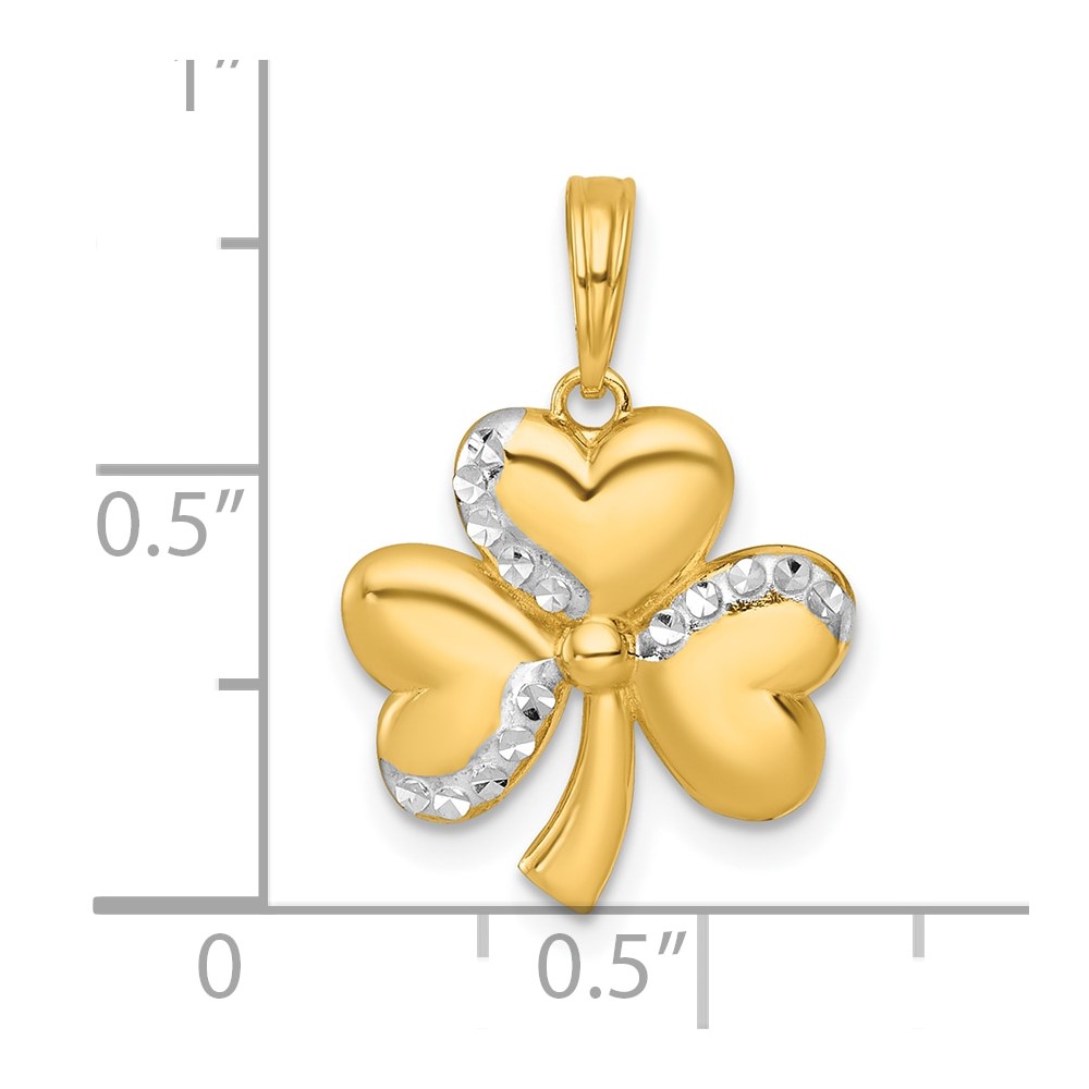 14k with White Rhodium Polished 3-Leaf Clover Charm