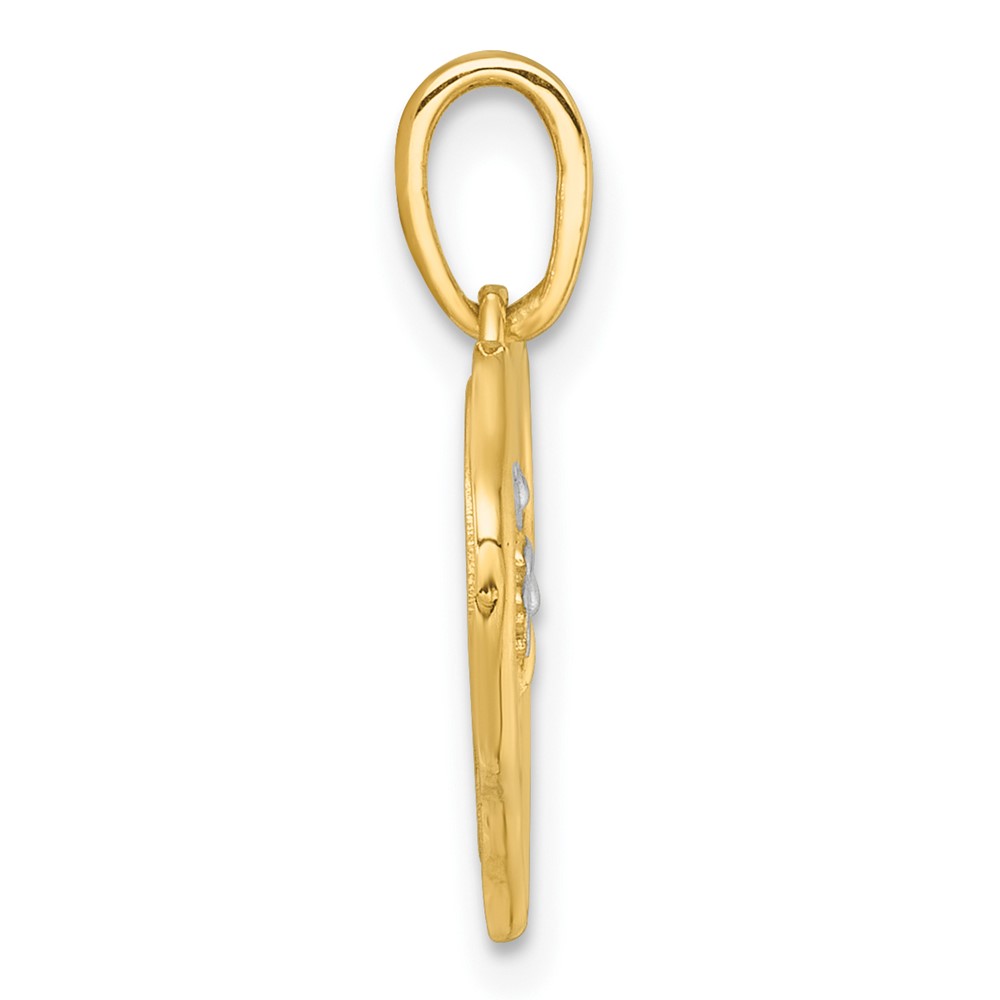 14k with White Rhodium Polished And Brushed Butterfly and Flowers In Wavy Heart Pendant