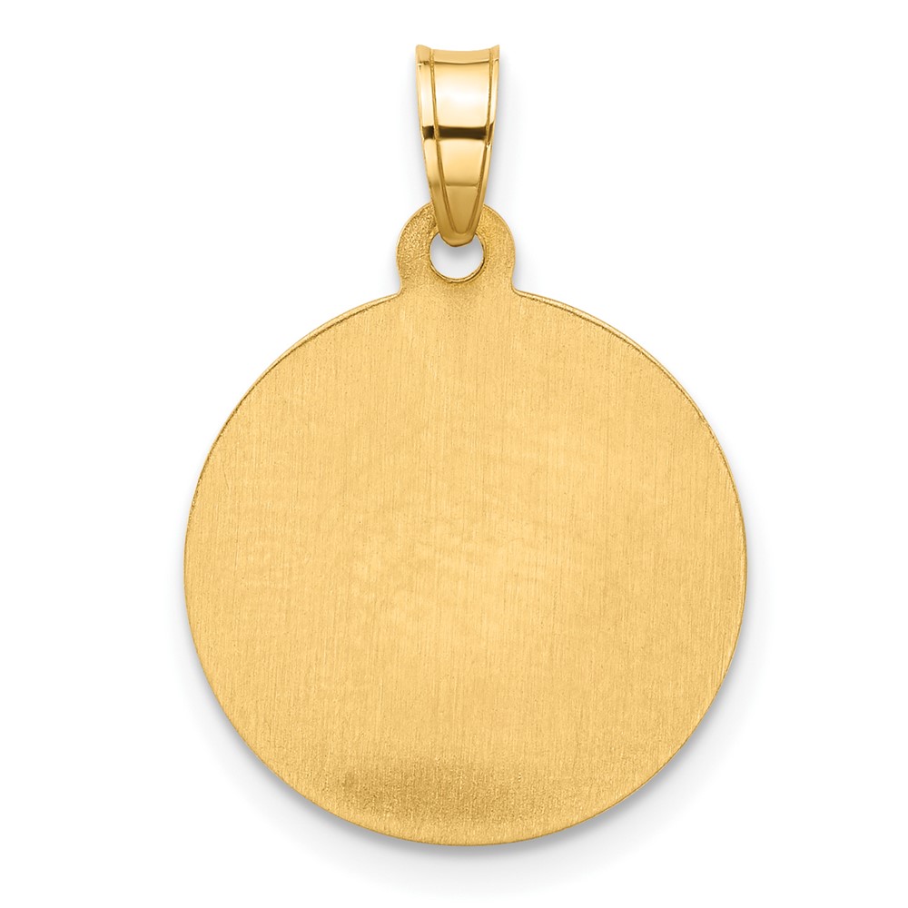 14k with White Rhodium Polished and Satin Hollow St. Theresa Medal Round Pendant