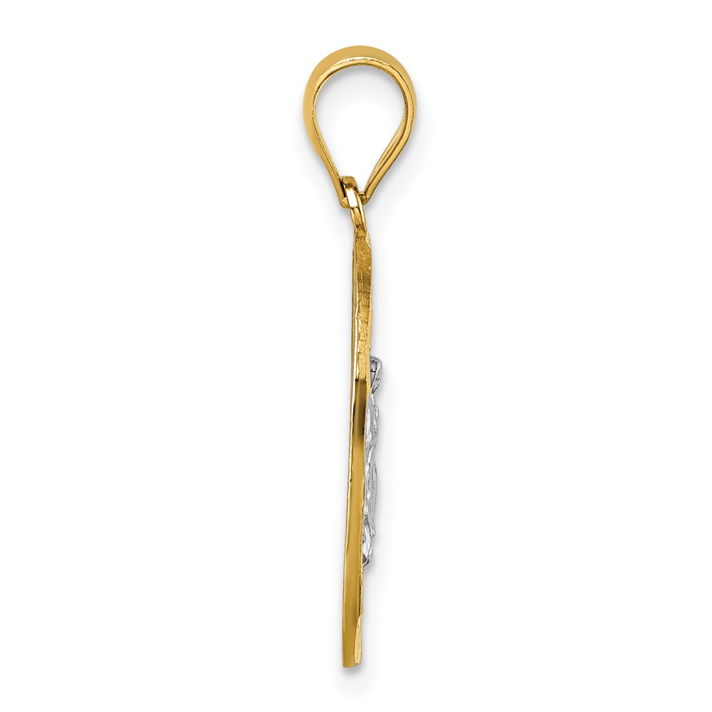 14k with White Rhodium Polished Diamond-cut Pierced Design Our Lady of Guadalupe Pendant