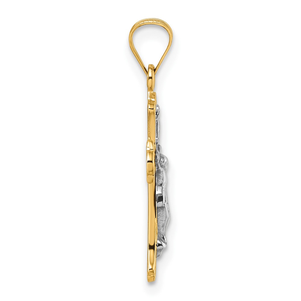 14k with White Rhodium Polished Fleur de Lis INRI Crucifix Cross Pendant